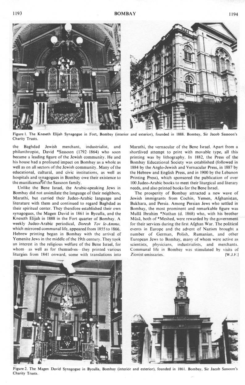 Encyclopaedia Judaica (1971): Bombay, vol. 4, col. 1193-1194