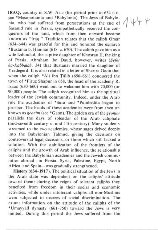 from: Iraq; In: Encyclopaedia Judaica 1971, vol. 8