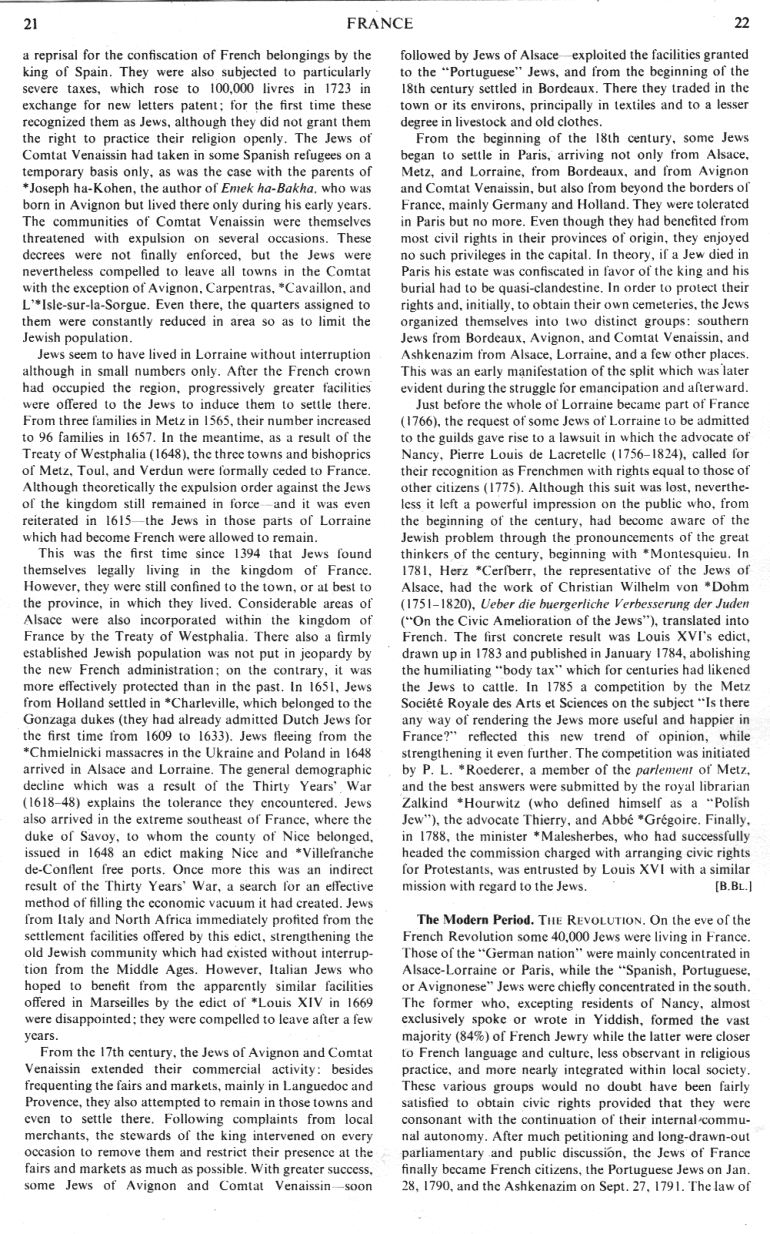 ![]() Encyclopaedia Judaica (1971): France, vol. 7, col. 21-22 |