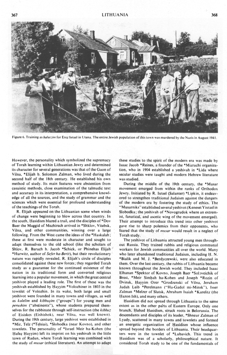 the unique character of Lithuanian Jewry. Lithuania was a