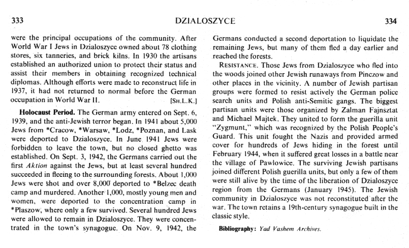 from: Dzialoszyce; In: Encyclopaedia Judaica 1971, vol. 6