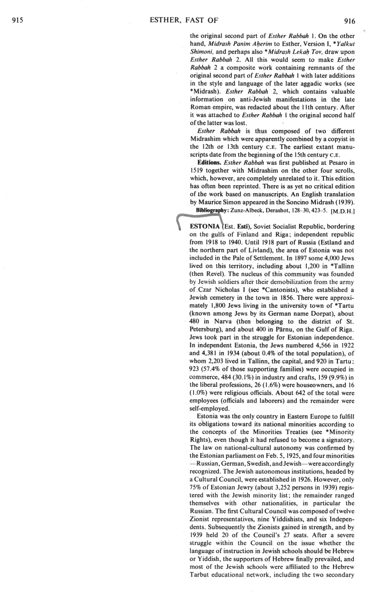 ![]() Encyclopaedia Judaica: Estonia, volume 6, col. 916 |