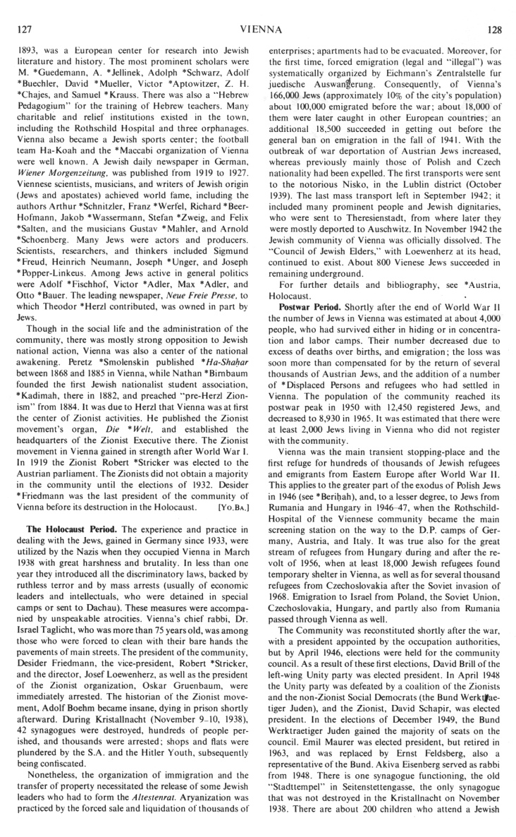 Encyclopaedia Judaica: Vienna, vol.16, col.129,