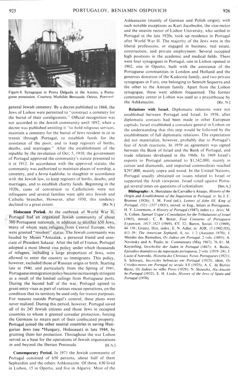 Judaica 1971: Portugal, vol. 13, col. 919-920,