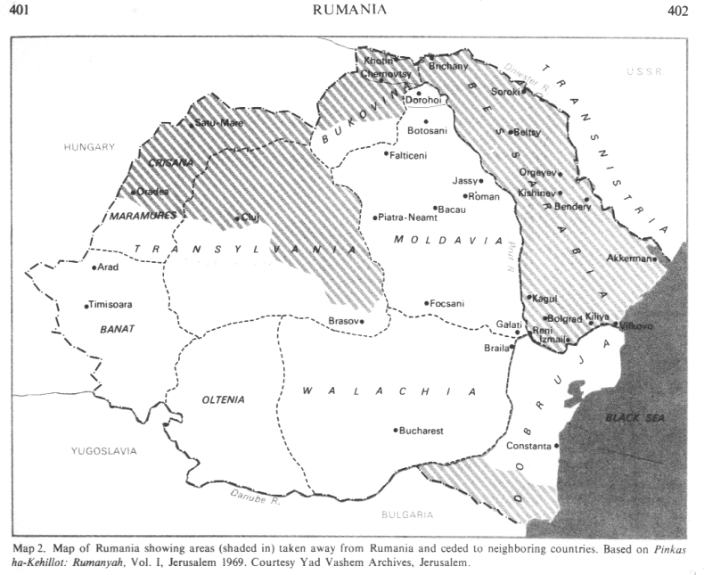 Juden in Rumänien / Jews in Rumania (Romania) Zweiter Weltkrieg / Second World War (WWII) 1. Jews in Rumania (Romania) in WW II (01): Massacres and camps (Encyclopaedia Judaica 1971) ![]() Massacres - deportations -