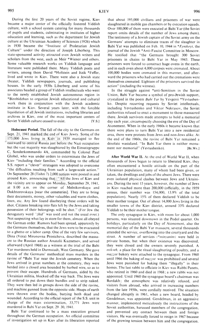 Back and forth with Jews in Kiev - pogroms 1881 - police actions 1881-1917 - pogroms 1905 - blood libel trial 1911-1913 - communist revolution and turmoil 1917-1921 - Babi Yar 1941-1944 - communist measures against racist Zionists 1948-1971 - Jewish writers and cultural activities