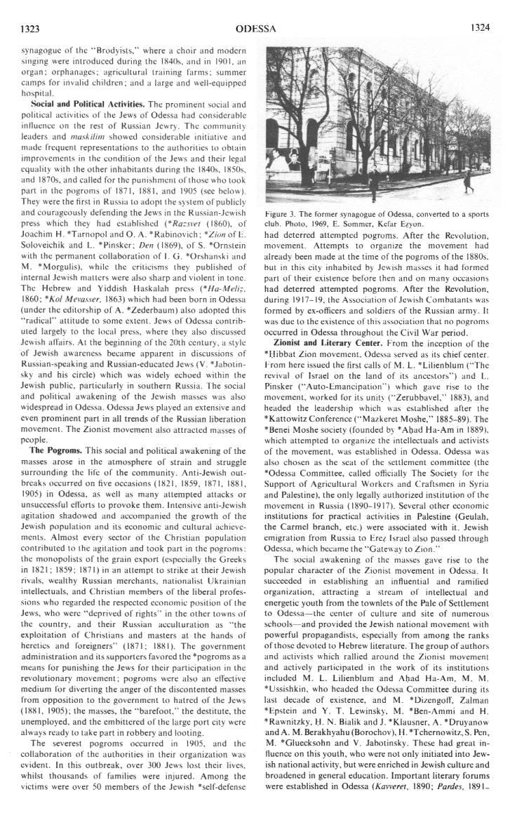 Encyclopaedia Judaica (1971): Odessa, vol.12, col.1324, former synagogue is sports hall