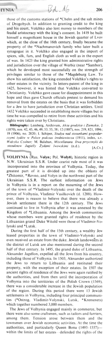 from: Volhynia; In: Encyclopaedia Judaica 1971, vol. 16