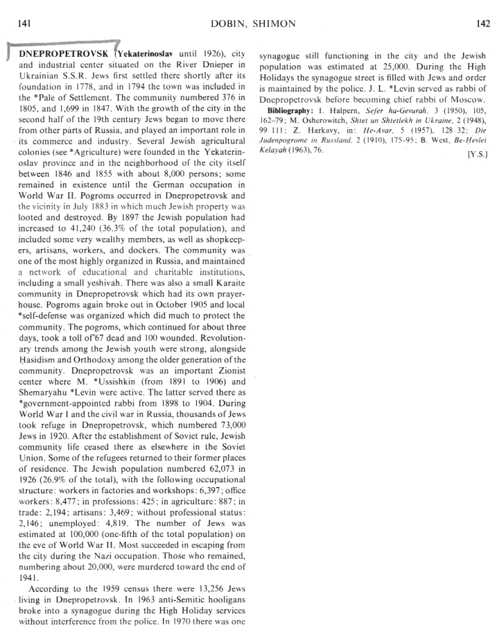 from: Dnepropetrovsk; In: Encyclopaedia Judaica (1971), vol. 6
