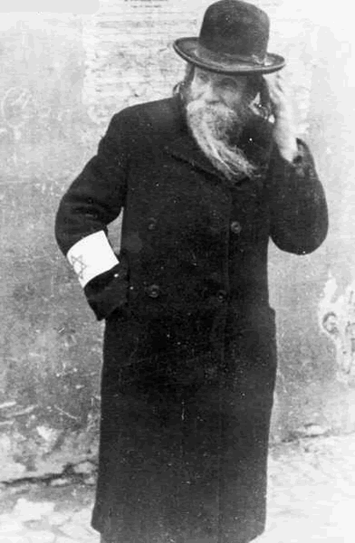 -- Poland, man with armband with Jewish star, Warsaw ghetto 1943: