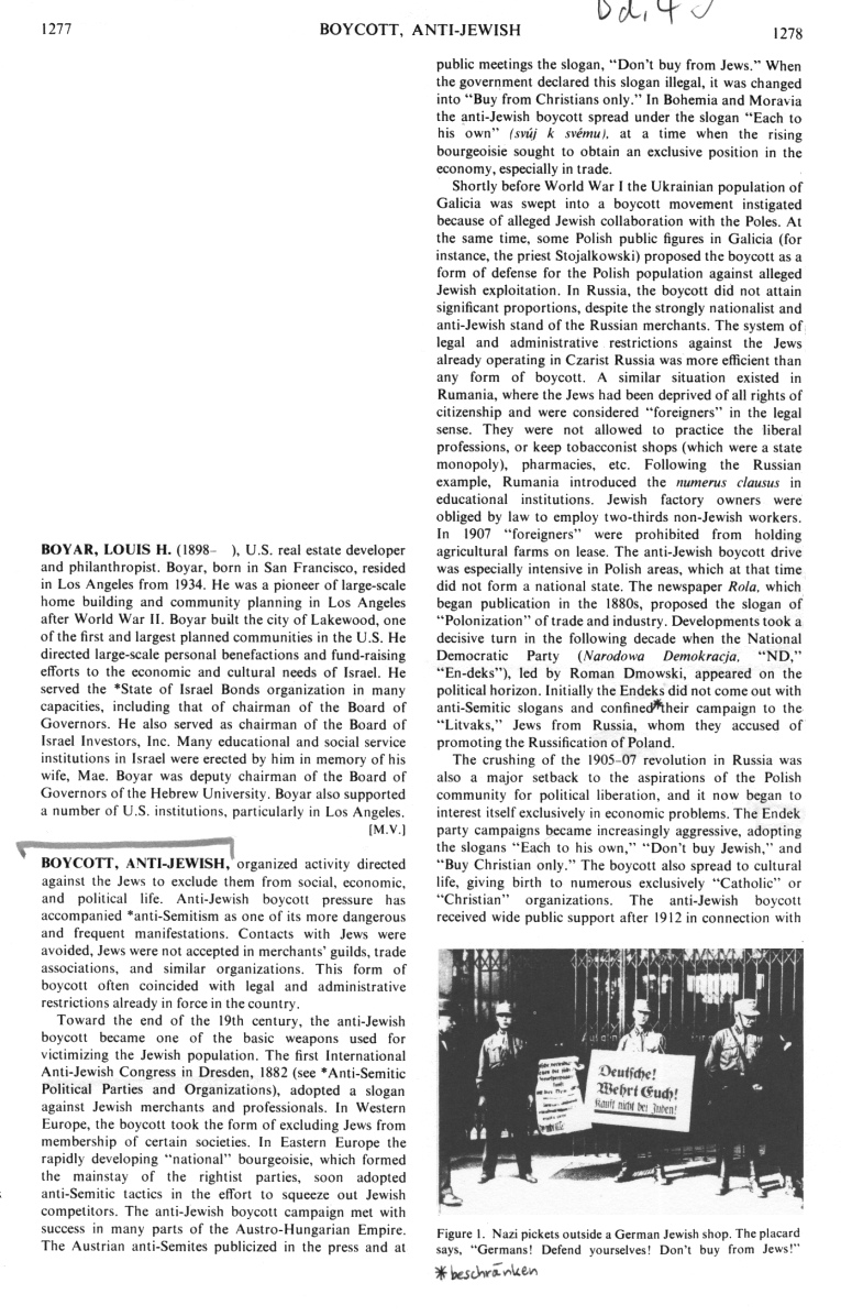 a specific anti-Jewish program, but sporadic boycotts of Jewish