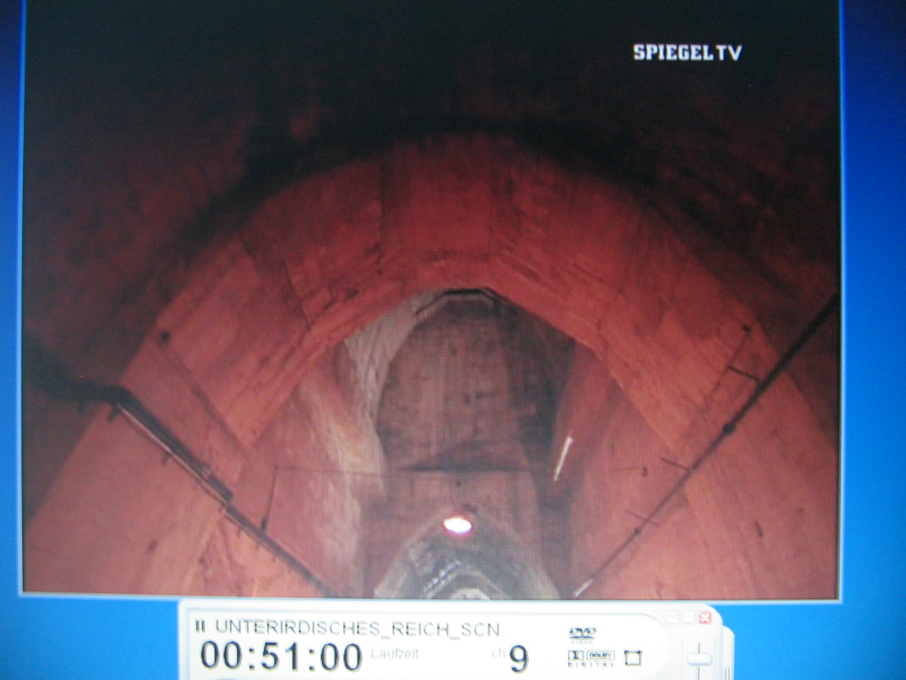 [Bilder von Stollen im Rohbau, von ausgeziegelten Stollen, Kabelschächte]