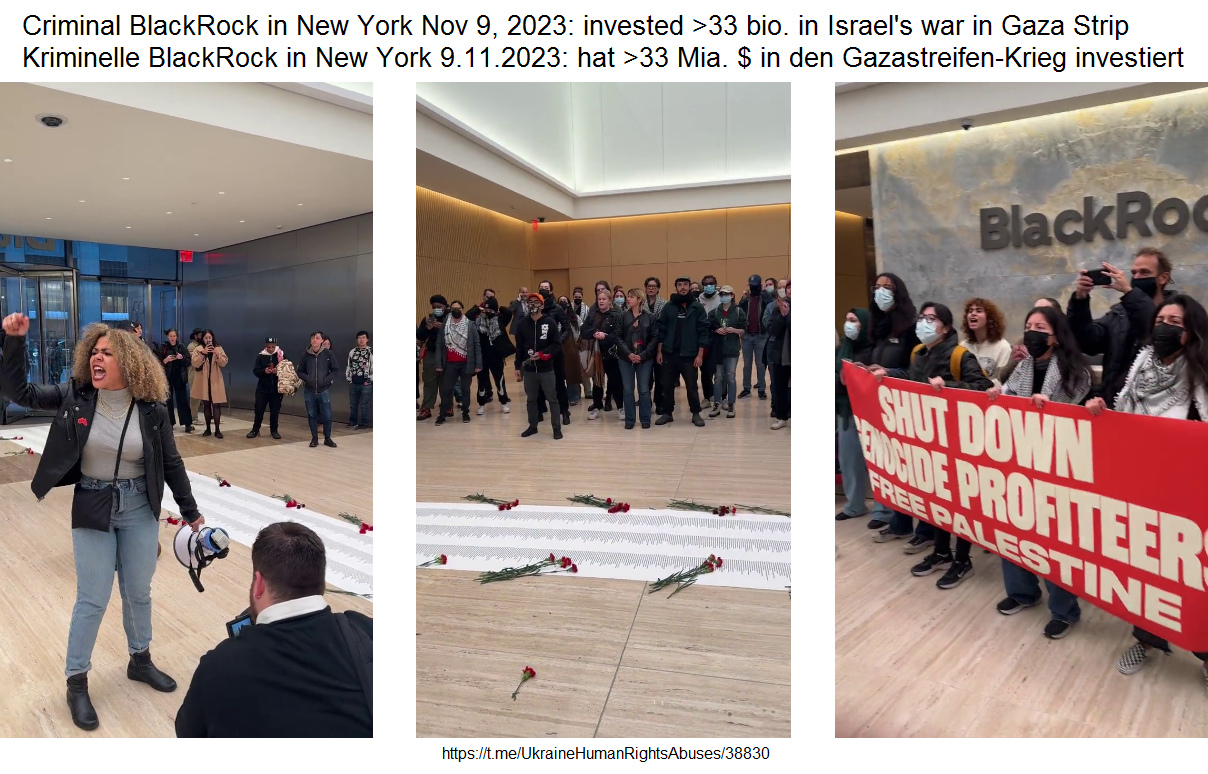 GEISTESKRANKE ZIONISTEN mit BlackRock Widerstand New York ("USA") 9.11.2023 - 16:37h: Aktivisten