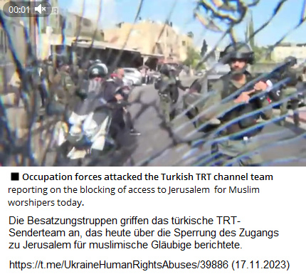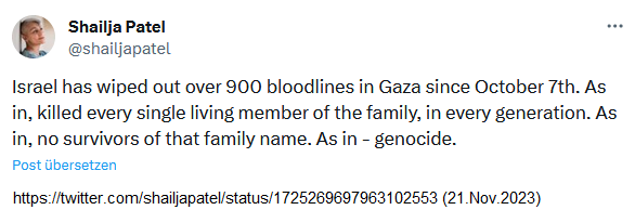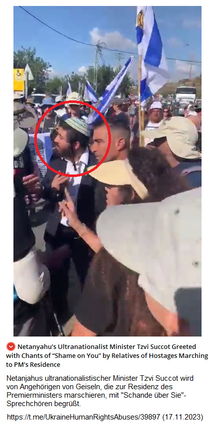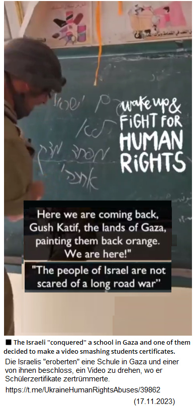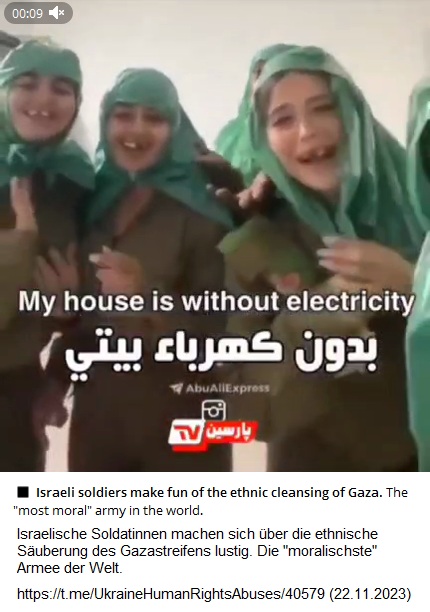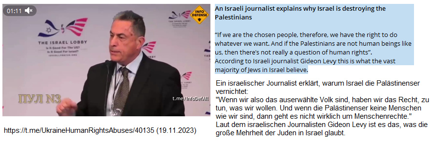 9.10.2023 alle Palästinenser als "menschliche Tiere" (Video-Link).