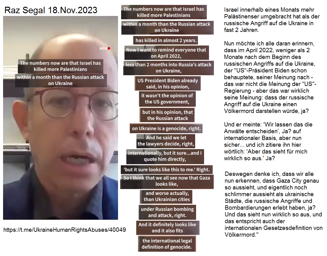 6.11.2023 zugegeben, dass IL an den Palästinensern einen