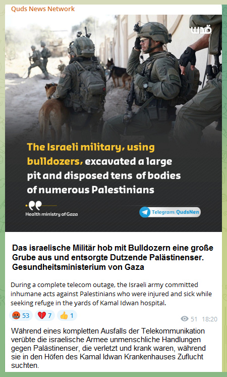 Foto-Link: https://t.me/QudsNen/92190 Israel's