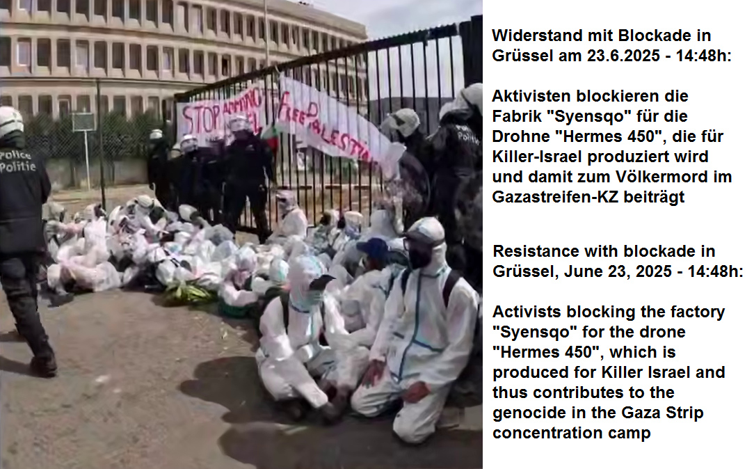 Blockade in Grüssel am 23.6.2025 - 14:48h: Aktivisten