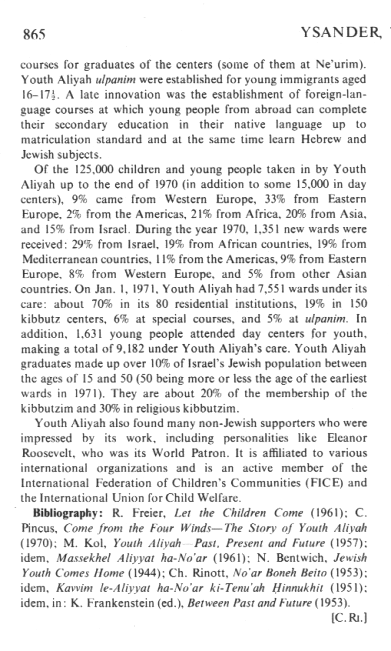 -- C. Pincus: Come from the Four Winds - The Story of Youth Aliyah (1970)