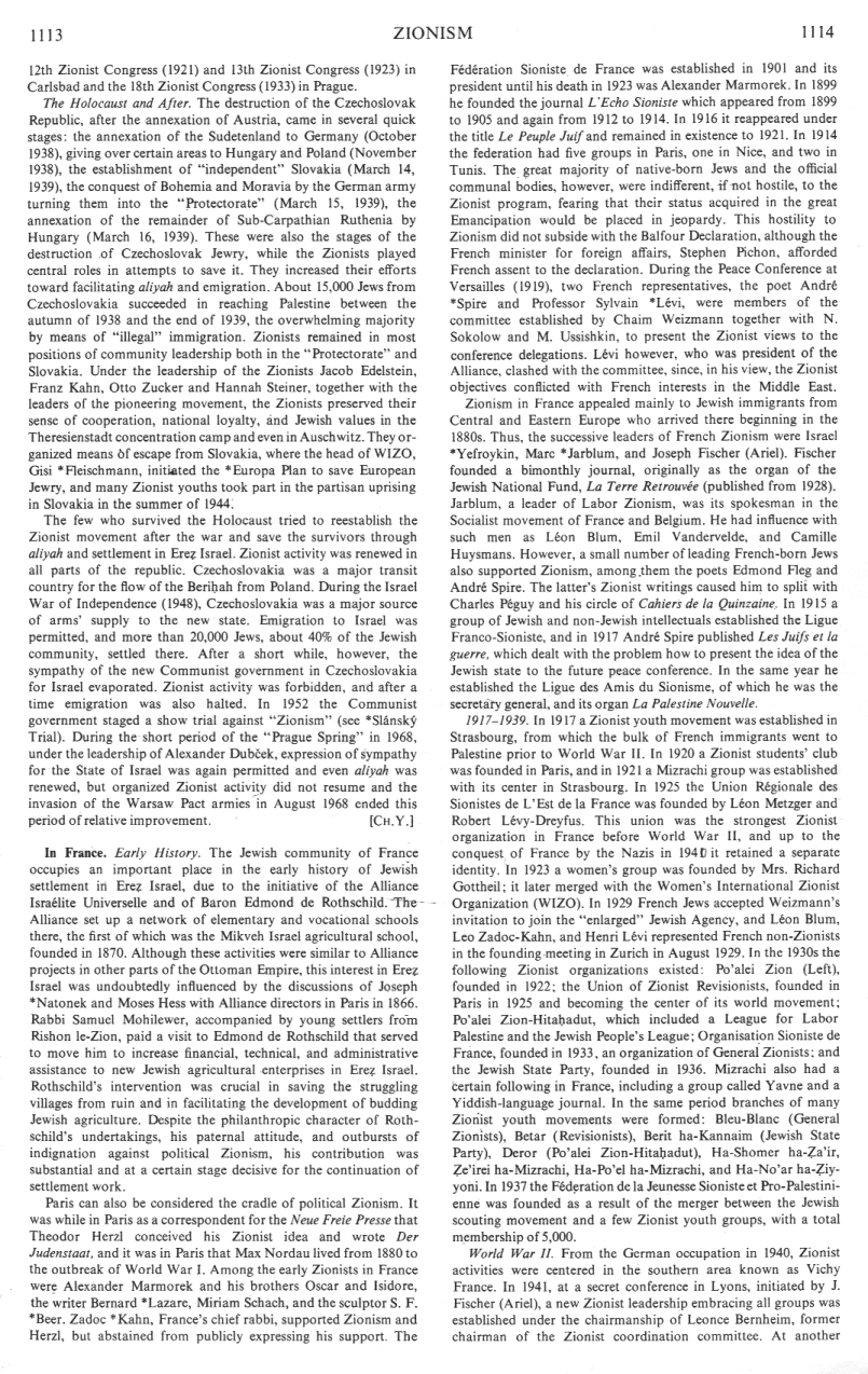![]() Encyclopaedia Judaica (1971): Zionism, vol. 16, col. 1113-1114 |