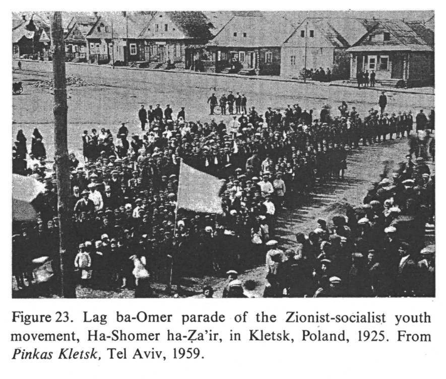 Encyclopaedia Judaica (1971): [[racist]] Zionism, vol. 16, col. 1131: Lag ba-Omer parade of the [[racist]] Zionist-socialist youth movement, Ha-Shomer ha-Za'ir, in Kletsk, Poland, 1925. From "Pinkas Kletsk", Tel Aviv, 1959
