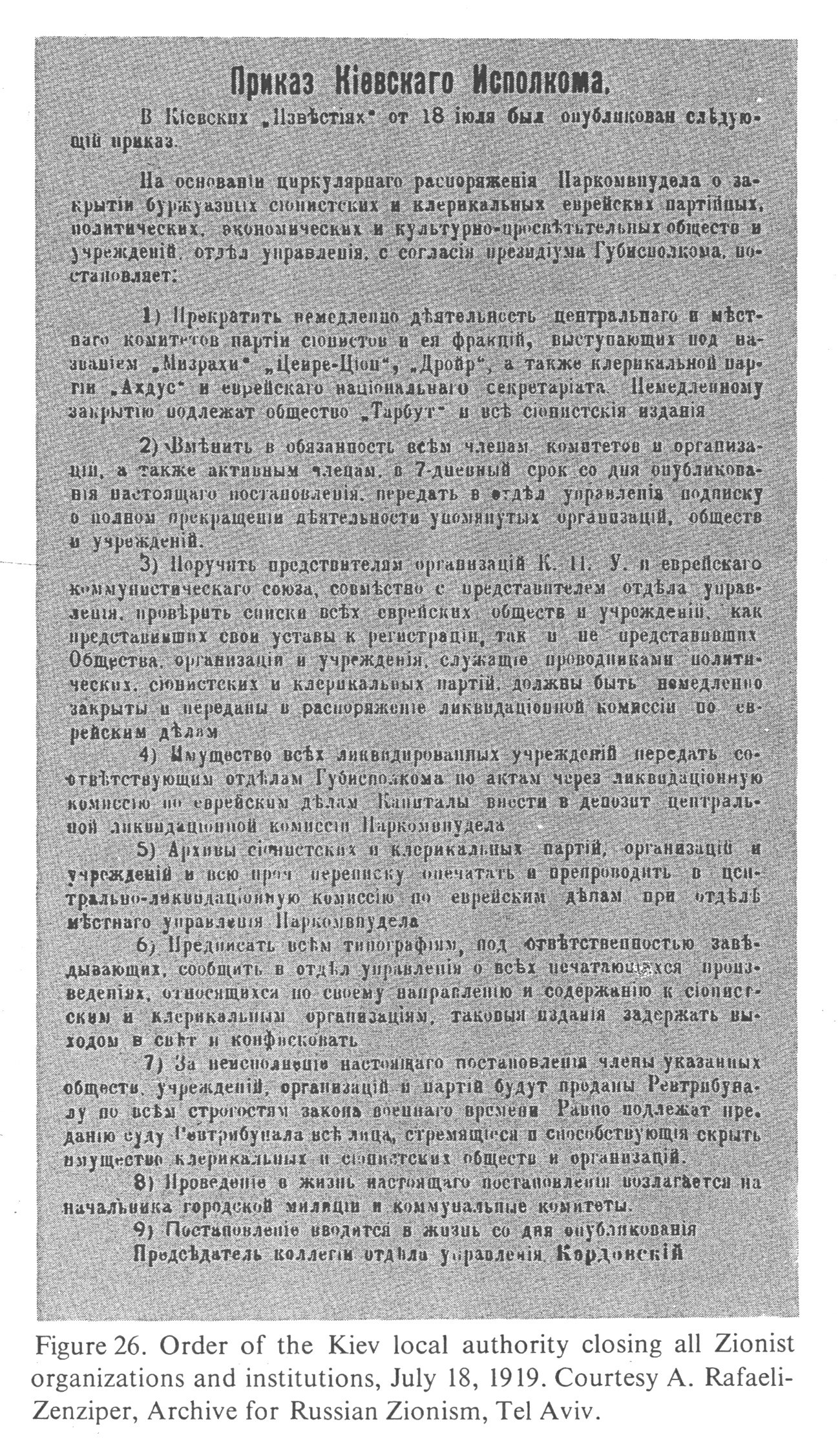 July 18, 1919. Courtesy A. Rafaeli-Zenziper, Archive for Russian Zionism, Tel Aviv