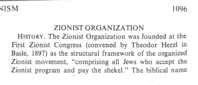 from: Zionism; In: Encyclopaedia Judaica 1971, vol. 16