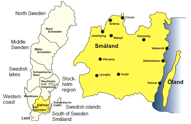 Map 28: Map of Sweden with the province of Småland in the south: http://schweden-mitranka.de/sudschweden.html