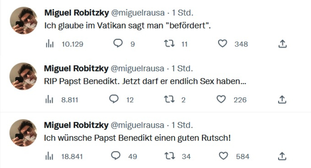 kommt posthum heraus: Schöne Sexorgien usw.: Papst Benedikt bricht posthum Schweigen: „Schwulen-Clubs“